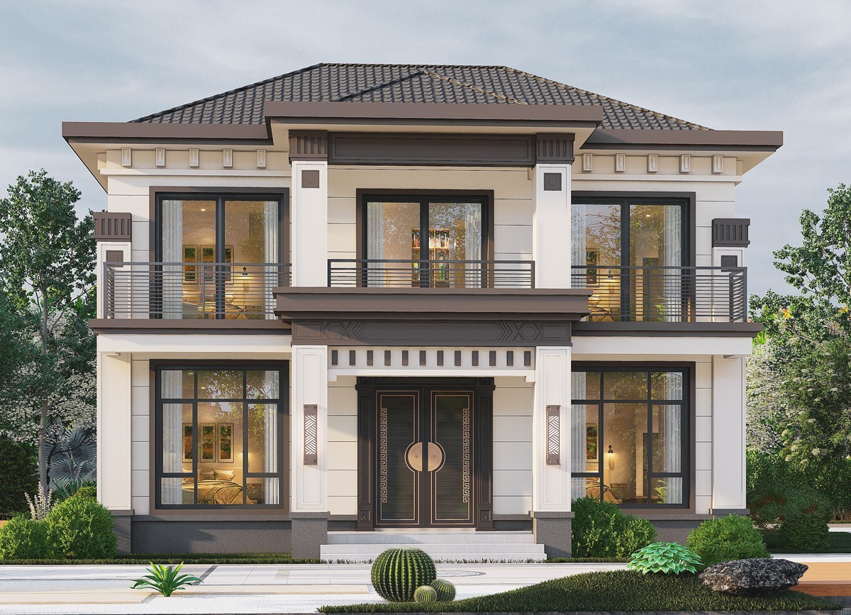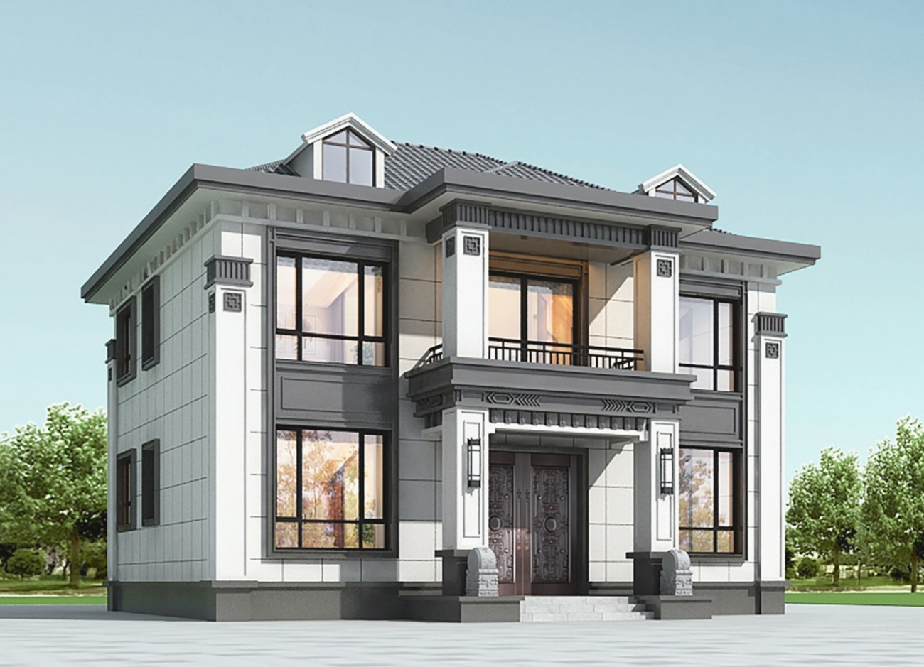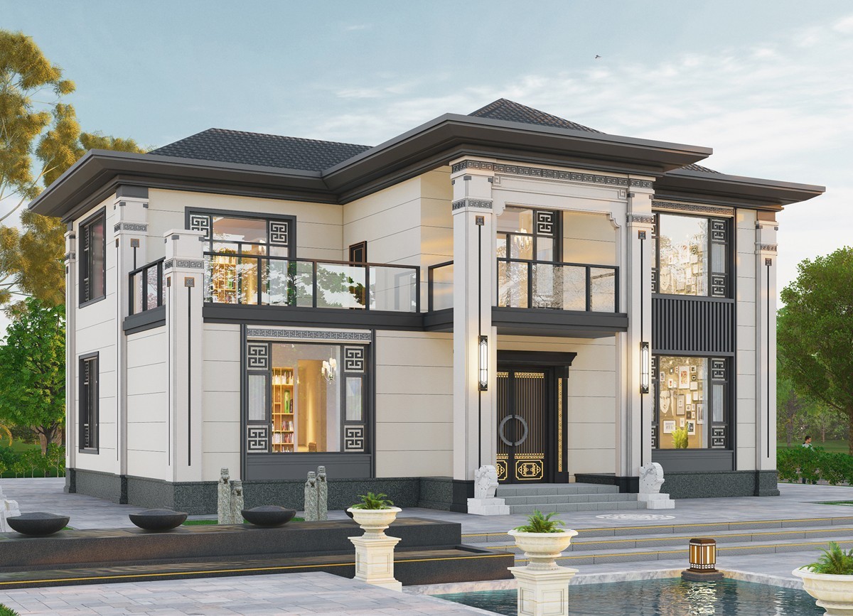 白山005 两层新中式(11.36x11.76米)-【易设计】
