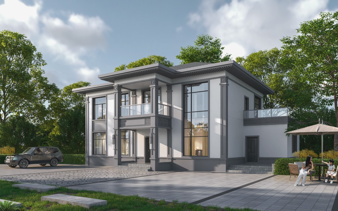 白山011 两层新中式(15.43x12.66米)-【易设计】